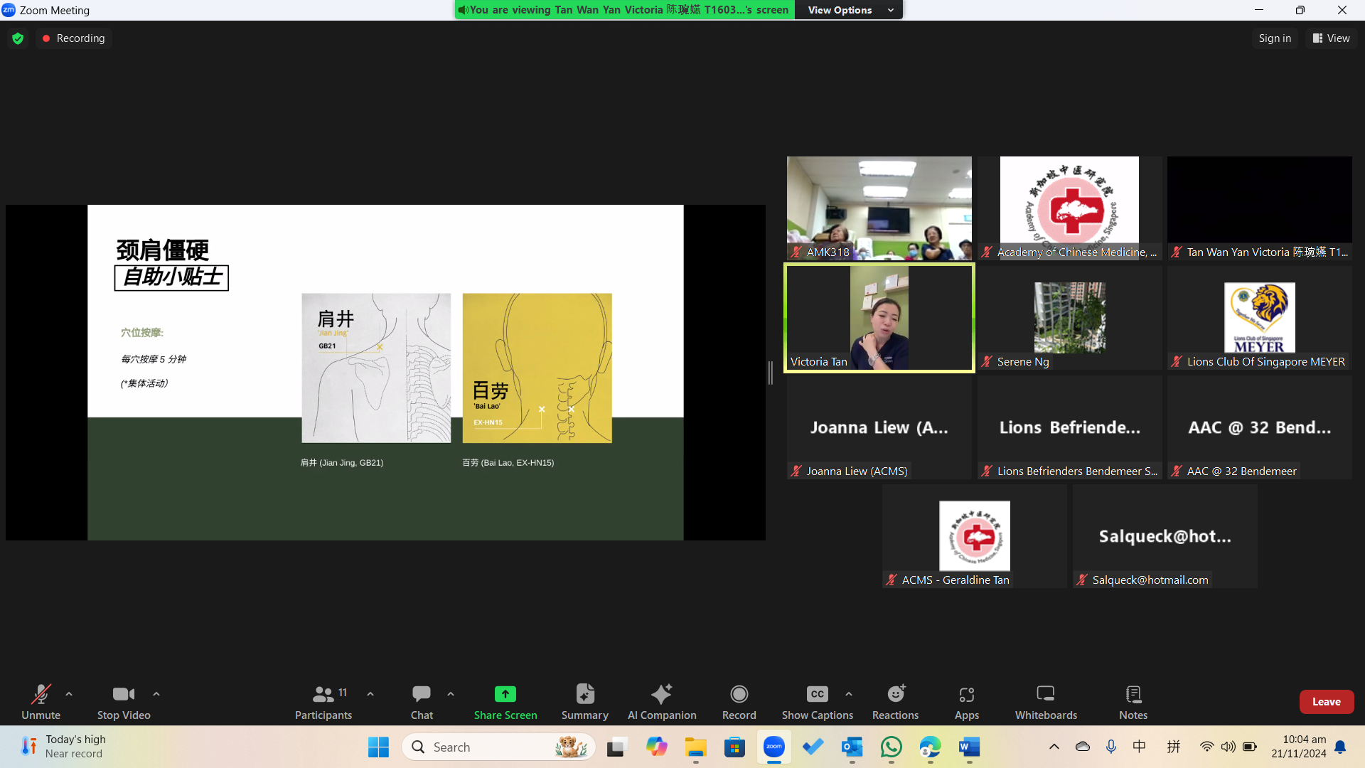 健康讲座 (11月) – 《常见职业病的中医穴位推拿疗法》